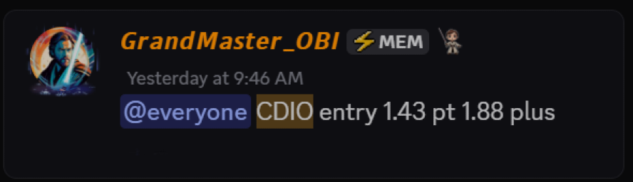 On February 18, 2026, Grandmaster-OBI alerted Cardio Diagnostics ($CDIO) in the Making Easy Money Discord at $1.43.
