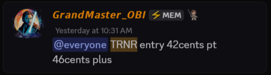 - $TRNR — Alerted 2/18/26 @ $0.42, high 2/19/26 @ $0.76 (+81%)