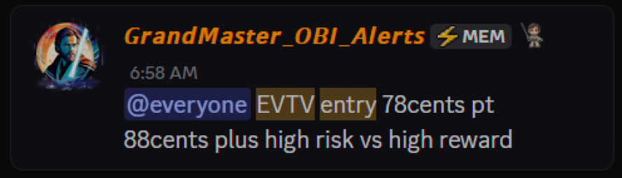 The alert was issued inside the Making Easy Money Discord while EVTV was still trading quietly under $1. Within hours, momentum accelerated, liquidity tightened, and the stock entered full price-discovery mode. By the next session, EVTV was one of the most talked-about small-cap movers in the market.