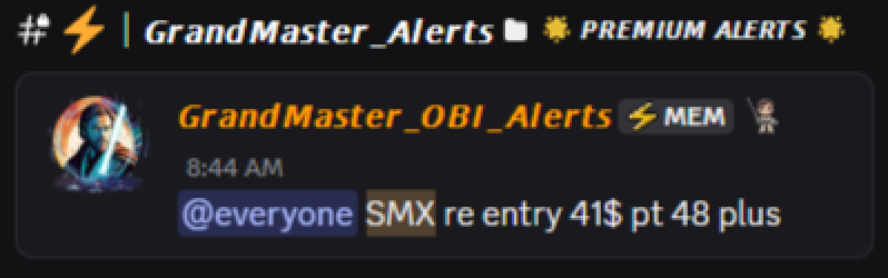 On 11/21/25, Grandmaster-Obi alerted $SMX inside the Making Easy Money Discord with an entry at $5.20.