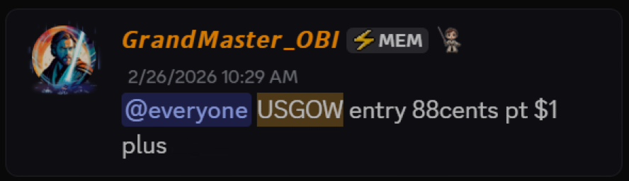 GRANDMASTER-OBI alerted $USGOW at just 88 cents inside the Making Easy Money Discord. Within days, the stock surged to $2.96.