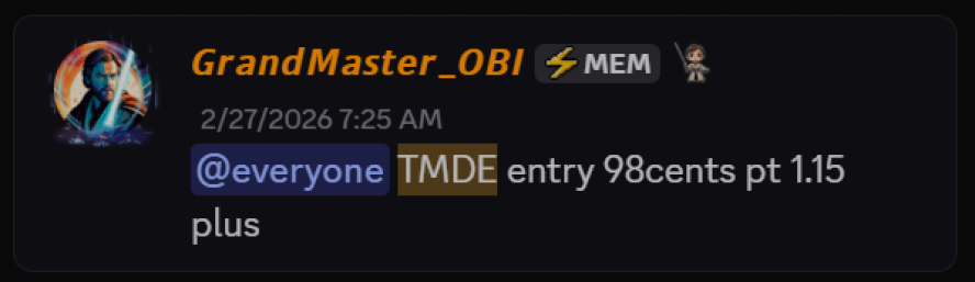 Low-float energy names can become highly sensitive when liquidity thins and buyers begin competing for limited supply. The price action in $TMDE reflected textbook imbalance conditions — and those conditions were identified early inside the Making Easy Money Discord.