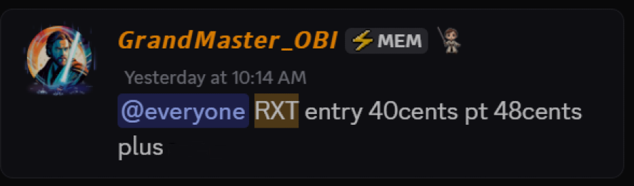On February 17, 2026, Grandmaster-Obi alerted Rackspace Technology (RXT) inside the Making Easy Money Discord at an entry price of $0.40. By the next trading session, February 18, the stock surged to a high of $1.71.