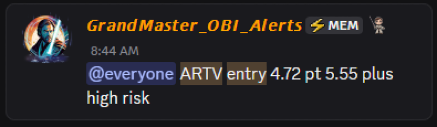 Just days later — and this time even faster — Grandmaster-Obi dropped another alert inside the Making Easy Money Discord. Early Monday morning, December 15, 2025, he flagged ARTV at $4.72. Within just a few hours, the stock ripped higher, reaching a high of $6.49, leaving traders speculating that the move may not be finished yet.