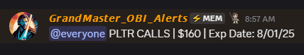 Back on July 21, OBI identified Palantir Technologies (NYSE: PLTR) as a prime candidate for an options‑driven move and urged members to buy the August 1 $160 calls while PLTR was still trading below $152. Those contracts briefly went in‑the‑money when the shares hit $160.39 today—up over 85% since the alert—and OBI believes there’s still room to run toward $170 before expiration.