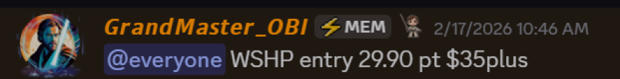 Adding fuel to the momentum discussion, Grandmaster-OBI also alerted WeShop ($WSHP) on February 17, 2026 at an entry price of $29.90.