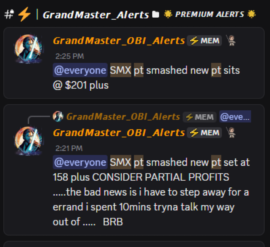 On December 4th, 2025, Security Matters ($SMX.US) soared to a new high of $196 per share — a +3,669% explosion from the original alert shared by Grandmaster-Obi inside his rapidly growing Making Easy Money Discord on November 21st at just $5.20 per share.