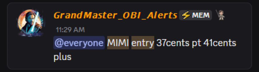 Also in the Making Easy Money Discord this morning, Grandmaster-Obi alerted Mint (MIMI.US) at just $0.37, and within hours the name climbed to a high of $0.56, marking a gain of over 50% intraday. The move highlighted how quickly momentum can build when coordinated early entries, volume, and retail interest converge.