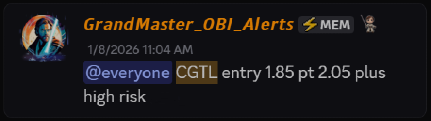 Grandmaster-Obi first alerted CGTL on January 8, 2026, at an entry price of $1.85. Just four days later, on January 12, CGTL reached an intraday high of $6.40.